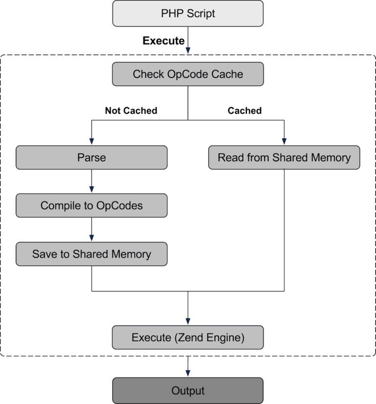 Mã PHP được viết dưới dạng thân thiện với con người. Nhưng để máy tính hiểu được mã, nó phải được chuyển đổi thành mã máy (machine code). Theo mặc định, mỗi yêu cầu đến máy chủ cần phải biên dịch thành mã máy.