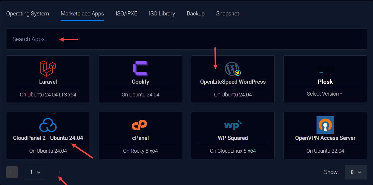 Khi cài đặt VPS mới trên Vultr, ở khu vực Marketplace Apps hiện có rất nhiều app tiện cài dùng luôn kèm control panel + WordPress. Trong số này có một số control panel tốc độ cao & miễn phí, ở đây tôi sẽ liệt kê nhanh vài cái tên cho bạn: