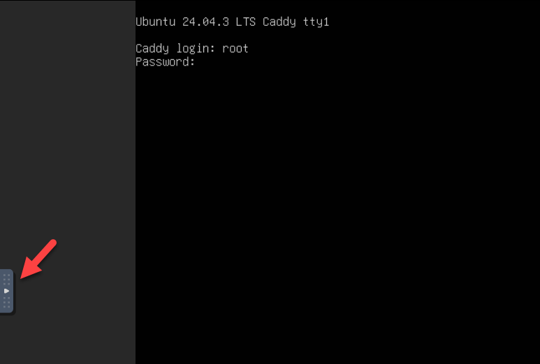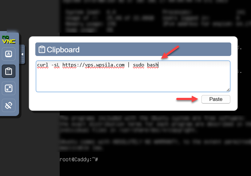2. Để paste pass vào bạn không thể Ctrl + V trong màn hình đen giao diện web này, bạn cần click vào mũi tên bên trái.