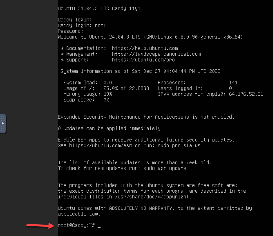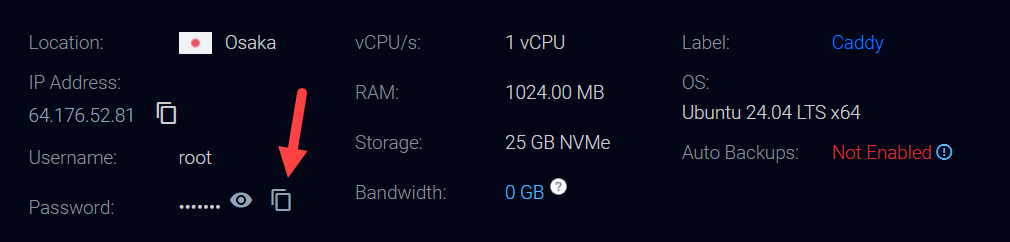 Cần lưu ý cả thông tin IP của VPS ngay bên trên, ví dụ trong trường hợp này của tôi là: 64.176.52.81 (lưu ý, IP của VPS của bạn chắc chắn sẽ khác!).