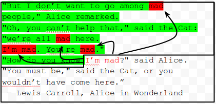 Hình bên dưới minh họa LZ77 (biến thể 2D) với từ-khớp / word-matching (thay cho pixel).