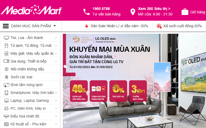bigc.vn(Siêu thị Big C)mediamart.vn(Siêu thị điện máy MediaMart)thegioididong.com(Thế giới di động)