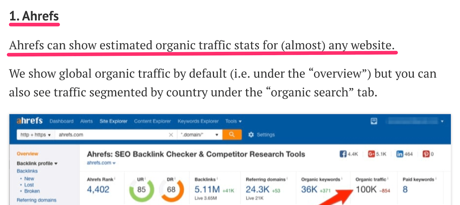 Trong “Phần 2 – các công cụ sử dụng để ước tính lưu lượng truy cập tự nhiên,” chúng tôi có đề cập đến Ahrefs.