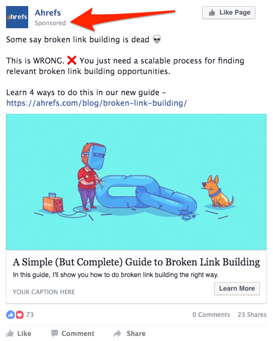 Dưới đây là một trong các quảng cáo Facebook của chúng tôi: