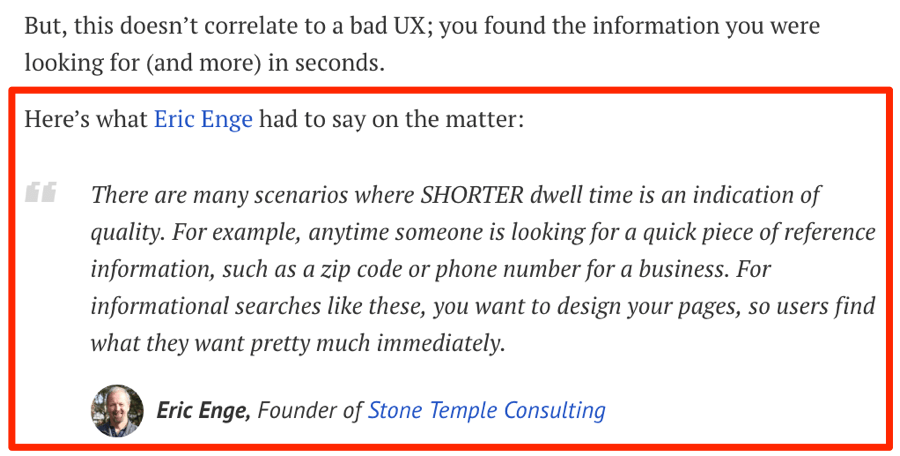 Bởi vì chúng tôi đề cập đến “dwell time” là một trong các yếu tố xếp hạng – cái này phần nào vẫn là chủ đề gây tranh cãi, chúng tôi đã tiến hành hỏi những lão làng có hiểu biết trong ngành đề tìm kiếm sự cộng hưởng trong ý kiến của họ.