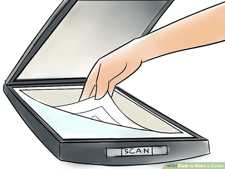 Một khi hoàn thành quá trình vẽ tay-lên mực, bạn có thể scan truyện tranh lên máy tính. Điều này cho phép bạn thêm văn bản cũng như sử dụng các phần mềm chỉnh sửa ảnh để làm màu sắc cho truyện nếu bạn muốn. Scan truyện cũng giúp cho việc xuất bản online được dễ dàng hơn.
