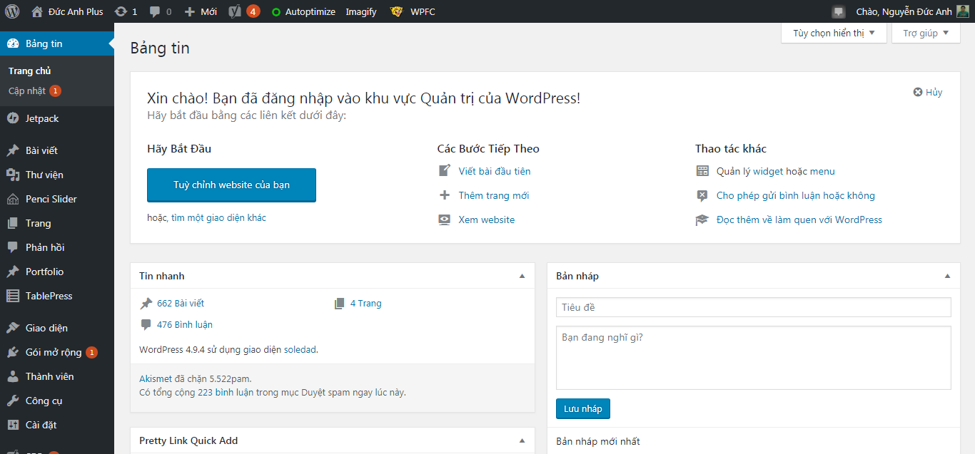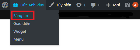 Đầu tiên sau khi đăng nhập, bạn trỏ vào phần tên trang web và nhấp vào Bảng tin (bản tiếng Anh: Dashboard):