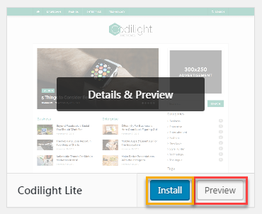 Thích giao diện nào, bạn để con trỏ chuột vào giao diện đó, nhấn preview để xem trước xem có ưng ý thực sự hay không, nếu ổn thì nhấn Install để cài đặt: