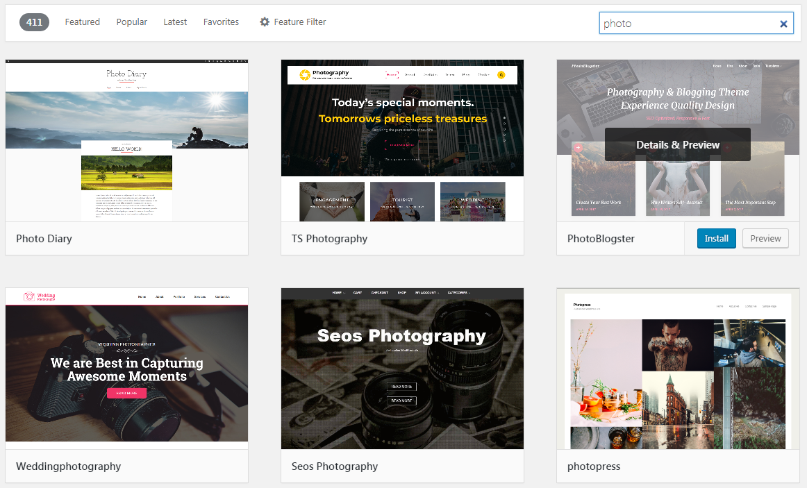 Bạn có thể gõ chính xác tên giao diện, hoặc tìm giao diện dựa trên ý tưởng mà bạn muốn (nhưng là bằng tiếng Anh). Ví dụ mình muốn tìm một giao diện chuyên dùng cho các trang dùng để up ảnh, hiển thị ảnh chụp thì mình có thể gõ chữ photo vào đây: