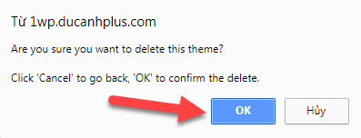 Một cửa sổ bật ra, hỏi bạn xác nhận lại là có muốn xóa theme hay không. Nếu đúng, bạn nhấn OK để xóa theme: