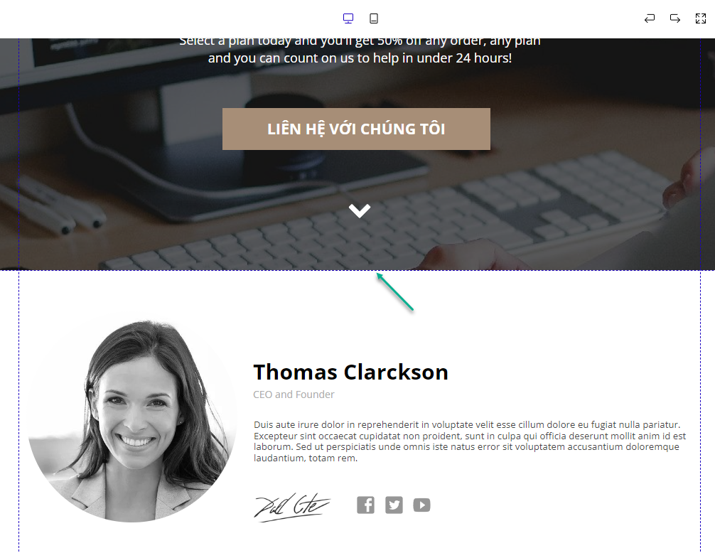 Việc chúng ta thao tác nhầm cần Undo (quay lại lựa chọn) hoặc Redo (tiến tới lựa chọn vừa mới làm) rất hay xảy ra. Để làm điều đó trong LadiPage rất dễ dàng, bạn chỉ cần click vào biểu tưởng dưới đây ở thanh trên cùng: