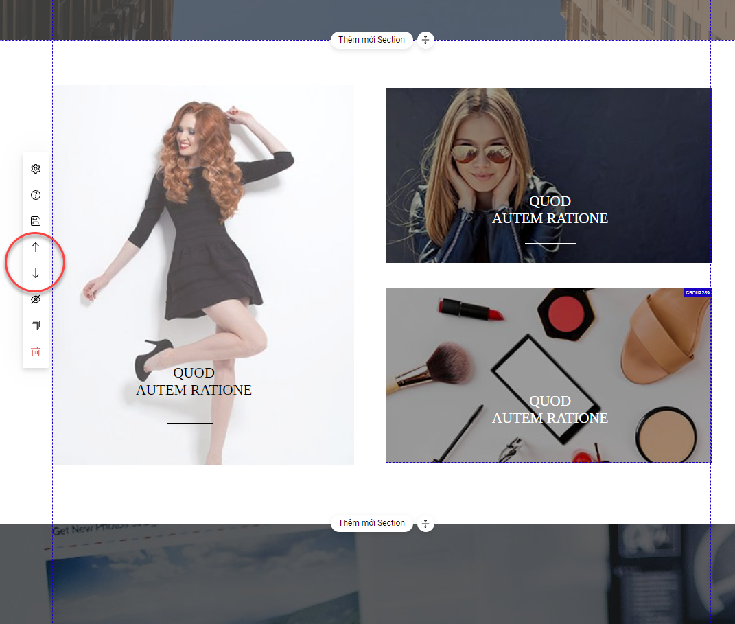 Bạn click vào mũi tên để di chuyển khối lên trên hoặc xuống dưới.
