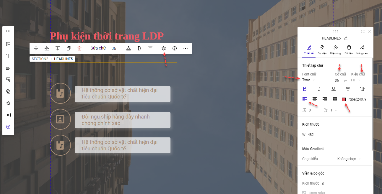 Việc điều chỉnh văn bản trong LadiPage rất dễ dàng.