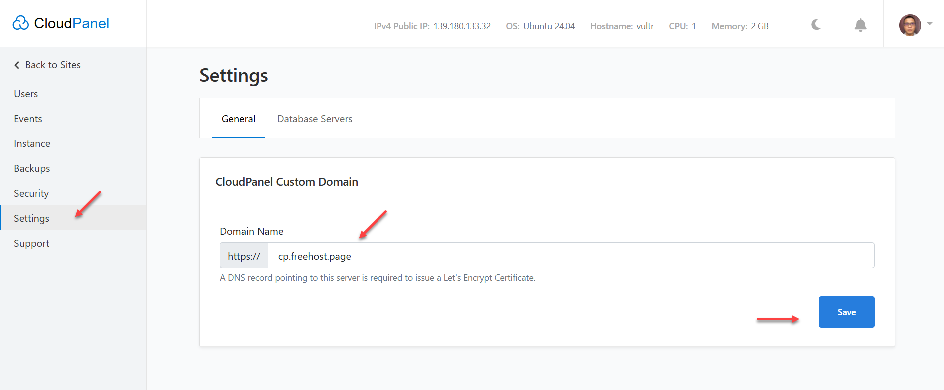 Nhớ trước khi tạo trang cần vào DNS của domain (thường thông qua Cloudflare cho nhanh và tiện) để trỏ nó về IP của VPS.