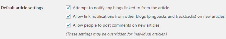 Ý của câu trên là, các thiết lập này là toàn cục, áp dụng lên toàn trang web, nhưng một bài viết cụ thể được phép điều chỉnh theo ý riêng, ví dụ như thiết lập bình luận của tất cả bài viết là mở, nhưng một bài cụ thể nào đó bạn chủ động khóa bình luận vẫn được. Điều ngược lại cũng đúng. Mường tượng dễ hiểu thì điều này giống kiểu: phép vua thua lệ làng.