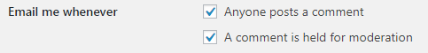 Có ai đó gửi phản hồi: mặc định tính năng này được tick, nhưng bạn nên bỏ chọn đặc biệt nếu trang của bạn có nhiều bình luận. Bởi vì nếu không làm vậy, hòm thư của bạn sẽ chật cứng email. Bạn yên tâm là nếu bạn hay đăng nhập vào blog thì bạn sẽ chẳng bỏ lỡ bất cứ bình luận nào đâu, vì WordPress có thông báo rất rõ ràng hiện đang có bao nhiêu bình luận mới (ở góc trên bên tay trái gần tên trang web).