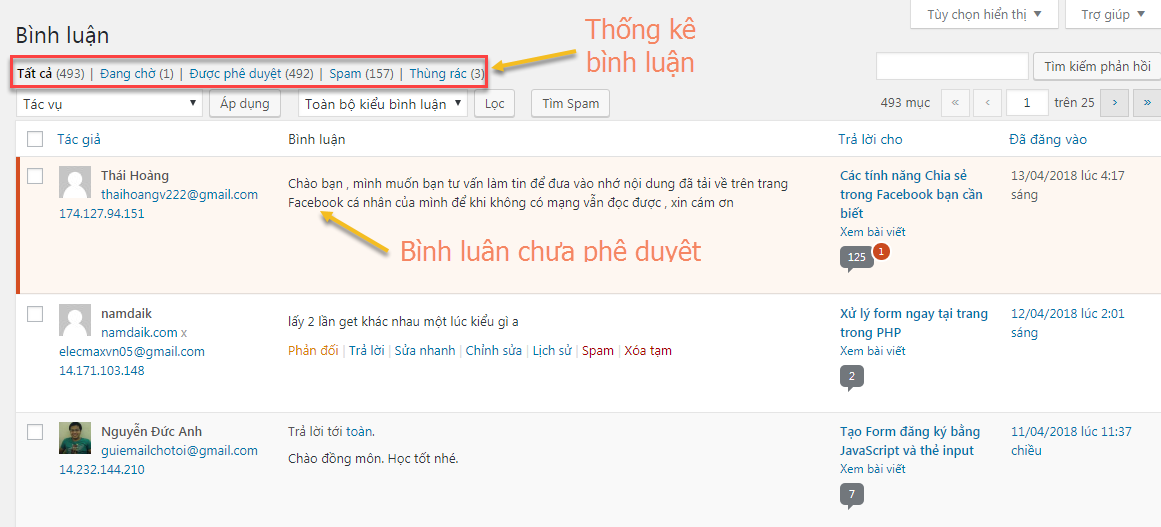 Thực tế thì phần phê duyệt, trả lời, sửa, xóa bình luận mới là phần bạn làm việc thường xuyên nhất.