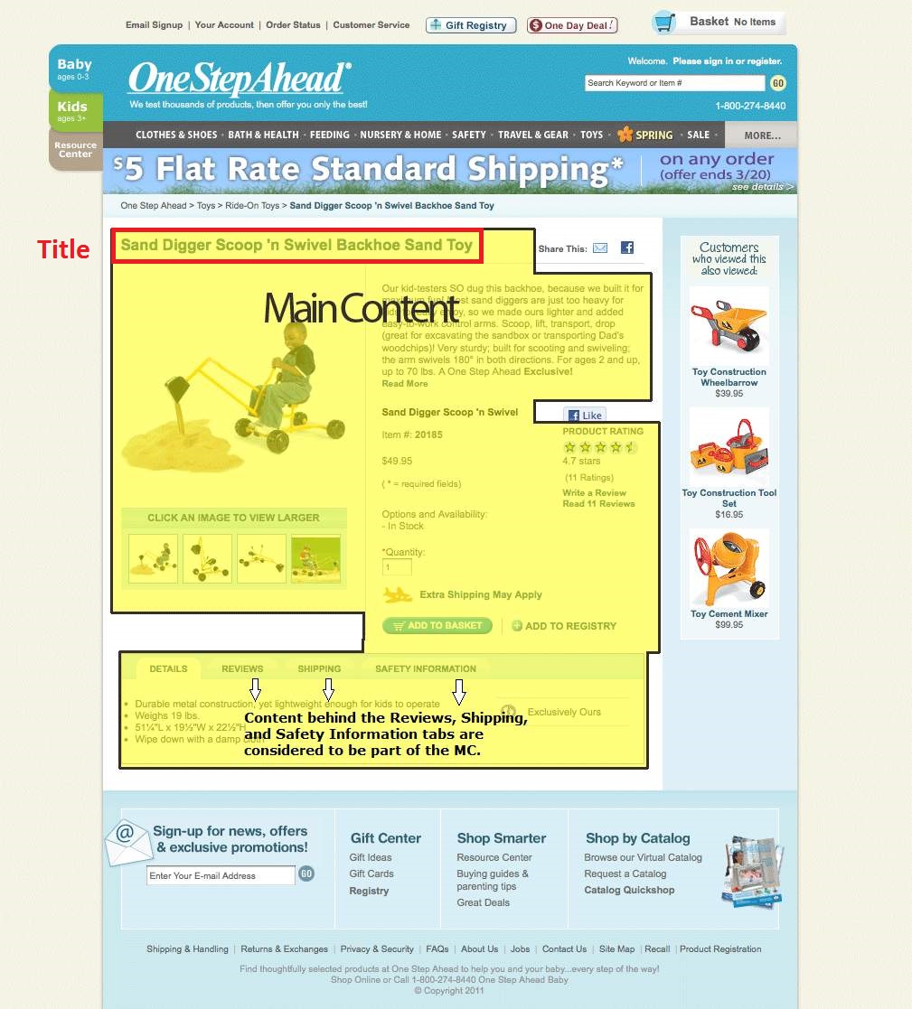 Tất cả nội dung trên trang web {{webpage / một trang cụ thể trên website}} có thể được phân loại thành một trong các loại sau: Nội dung chính (Main Content/MC), Nội dung bổ sung (Supplementary Content/SC) hoặc Quảng cáo/Kiếm tiền (Advertisements/Monetization/Ads). Để hiểu mục đích của trang web và thực hiện xếp hạng PQ, bạn cần có khả năng phân biệt giữa các phần khác nhau của trang {{Chú thích của người biên tập: tức là biết được đâu là MC, đâu là SC, đâu là Ads}}.
