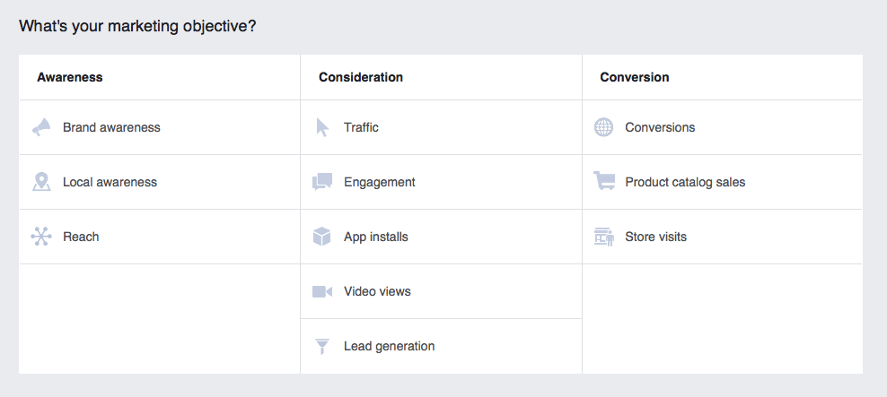 Ví dụ nếu bạn tối ưu hoá cho Chuyển đổi, Facebook sẽ hiển thị quảng cáo của bạn cho những người dùng có khả năng chuyển đổi cao nhất. Nếu bạn lựa chọn tối ưu hoá cho Tương tác Bài đăng (Post Engagement), Facebook sẽ phân phối quảng cáo của bạn đến những người từng comment, like, và share quảng cáo trong quá khứ, ví dụ thế. Hầu hết các kiểu mục tiêu quảng cáo sẽ cho phép bạn tối ưu hoá cho: