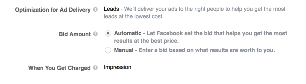 - Giá thầu của bạn. Giá thầu trên Facebook là một cuộc đấu giá, điều đó có nghĩa là nếu bạn sẵn sàng trả cao hơn, khả năng chiến thắng của bạn cũng lớn hơn. Nếu bạn để giá thầu theo kiểu tự động (automatic bidding), việc này sẽ được hoàn thành khá tốt, giá thầu của bạn sẽ đủ cao để chiến thắng trong hệ thống đấu giá. Theo Facebook, bạn sẽ thường “chỉ trả ít hơn giá bạn đặt thầu”. Nên nhớ đừng đặt giá thầu quá cao, kết quả bạn nhận được có thể không đúng như giá trị thực của nó. Nếu làm vậy bạn có thể sỡ hữu một chiến dịch có ROI tệ hại và mất tiền thay vì chiến thắng!