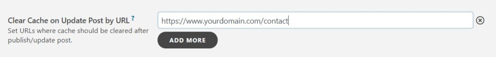 Clear Cache on Update Post by URL / Xóa cache khi cập nhật post thông qua URL – Nó có ích trong trường hợp như website của bạn chèn shortcode (mã rút gọn) của WooCommerce để hiển thị sản phẩm trên trang chủ (homepage). Vì nó là một cache của shortcode trang chủ, nó không thể tự động xóa nếu một post/stock/bình luận được cập nhật, tuy nhiên bạn có thể chỉ định các trang cụ thể theo cách thủ công ở đây. Sử dụng URL đầy đủ ở phần này.