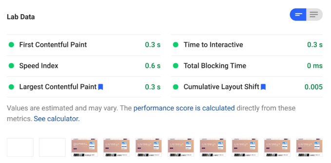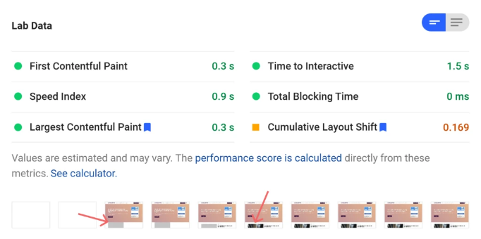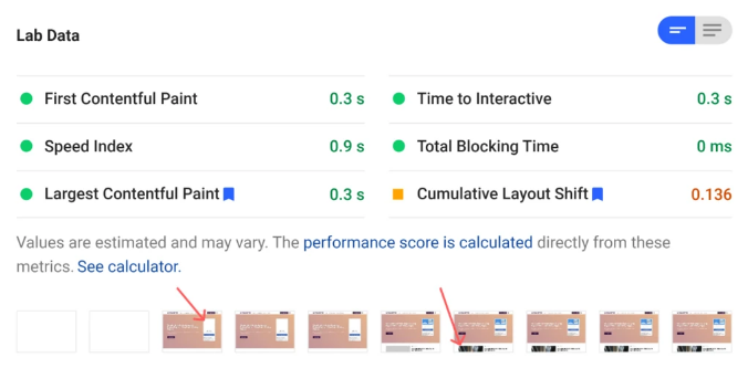 - Không có thay đổi bố cục – Như bạn có thể thấy trong hình chụp màn hình, FlyingPress từ frame thứ hai render mà không có bất cứ thay đổi bố cụ nào. Tránh việc thay đổi bố cục như vậy giúp giảm Cumulative Layout Shifts.