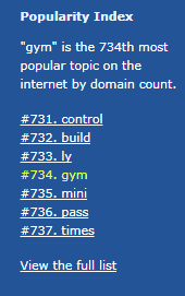 Và từ gym xét về mức độ phổ biến theo số lượng tên miền, nó đứng thứ 734: