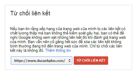 Nếu bạn đã nhận được thông báo về hành động spam thủ công dựa trên “các liên kết không tự nhiên” trỏ đến trang của bạn, công cụ này có thể giúp bạn giải quyết vấn đề đó. Nếu bạn không nhận được thông báo đó, thì nói chung bạn không cần quan tâm lo lắng về công cụ này.