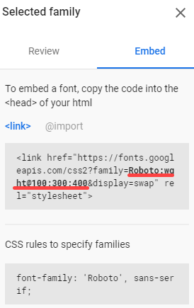 <link href="https://fonts.googleapis.com/css2?family=Roboto" rel="stylesheet">