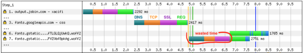 - Mặc dù font được phân phối qua CDN chất lượng cao của Google, nó vẫn cần đến hai tìm kiếm DNS bổ sung và nhiều yêu cầu HTTP.