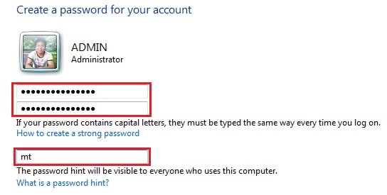 Ô cuối cùng (password hint) là phần gợi ý – đó là thông tin gợi nhớ lại password cho bạn khi bạn đăng nhập. Hãy để thông tin gợi nhớ này giúp bạn nhớ lại dễ dàng pass, nhưng cũng đừng gợi nhớ quá rõ ràng – kẻo người khác cũng suy ra được mật khẩu của bạn.