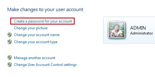 - Tiếp đến bạn chọn Create a password to your account – nếu bạn muốn thay ảnh đại diện thì nhấn Change your picture.
