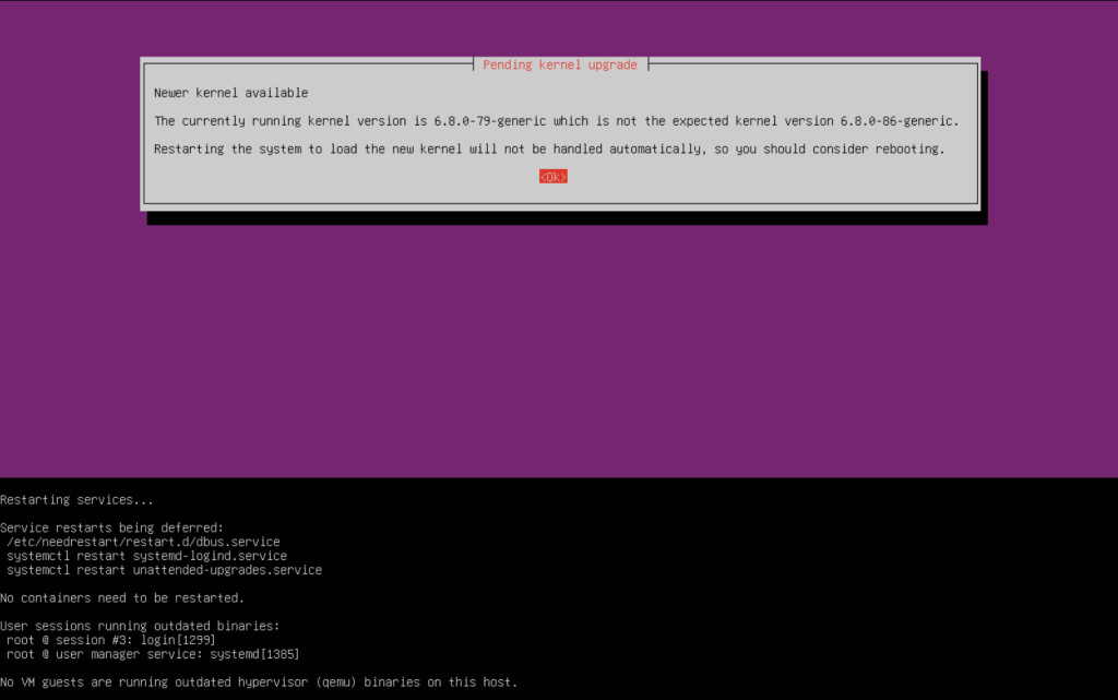 Ý nghĩa của dòng thông báo trên là hệ thống vẫn đang sử dụng Kernel cũ, mặc dù Kernel mới đã được cài. Không giống các phần khác, Kernel mới chỉ được tích hợp khi hệ thống được khởi động lại…