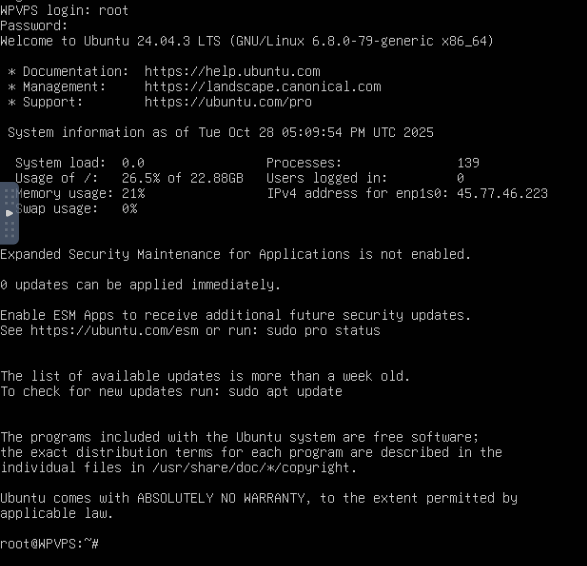 Hướng dẫn dưới đây điều khiển VPS thông qua Terminal Console có sẵn của VULTR, nó hoàn thành tốt nhiệm vụ. Nhưng nếu muốn tiện hơn bạn có thể dùng các phần mềm chuyên cho nhiệm vụ giao tiếp với VPS qua SSH, chẳng hạn như Bitvise SSH Client, như có đề cập trong bài: Mấy lưu ý khi sử dụng CLI…