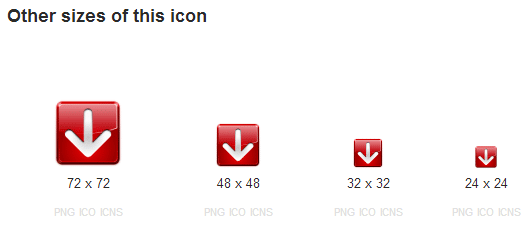 Tiếp theo là các kích cỡ khác của icon (không phải icon nào cũng có phần này – một số icon chỉ có một hoặc hai kích cỡ – khi ấy nếu muốn kích cỡ khác bạn tải về và chỉnh sửa lại bằng phần mềm – định dạng vector có thể phóng to lên mà không bị mờ, các định dạng khác chỉ nên thu nhỏ):