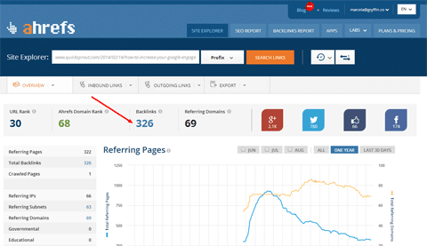 Vào ahrefs và paste liên kết thứ hai (Quicksprout) vào ô để thực hiện việc tìm kiếm các backlink của trang này. Các kết quả trông giống như thế này: