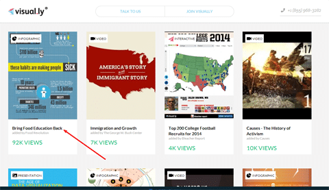 Một khi ảnh của bạn sẵn sàng, bước tiếp theo là đưa nó lên các trang web chấp nhận infographic. Trang ưa thích của tôi là Visual.ly, đây là trang có khả năng tạo ra số lượng hiển thị cao. Tôi có một số infographic được nhiều hãng tin tức lớn để ý đơn giản chỉ nhờ việc gửi nó lên đây thôi đấy.