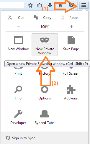 Ví dụ đây là nơi tìm chế độ ẩn danh của FireFox (phím tắt: Ctrl + Shift + P):