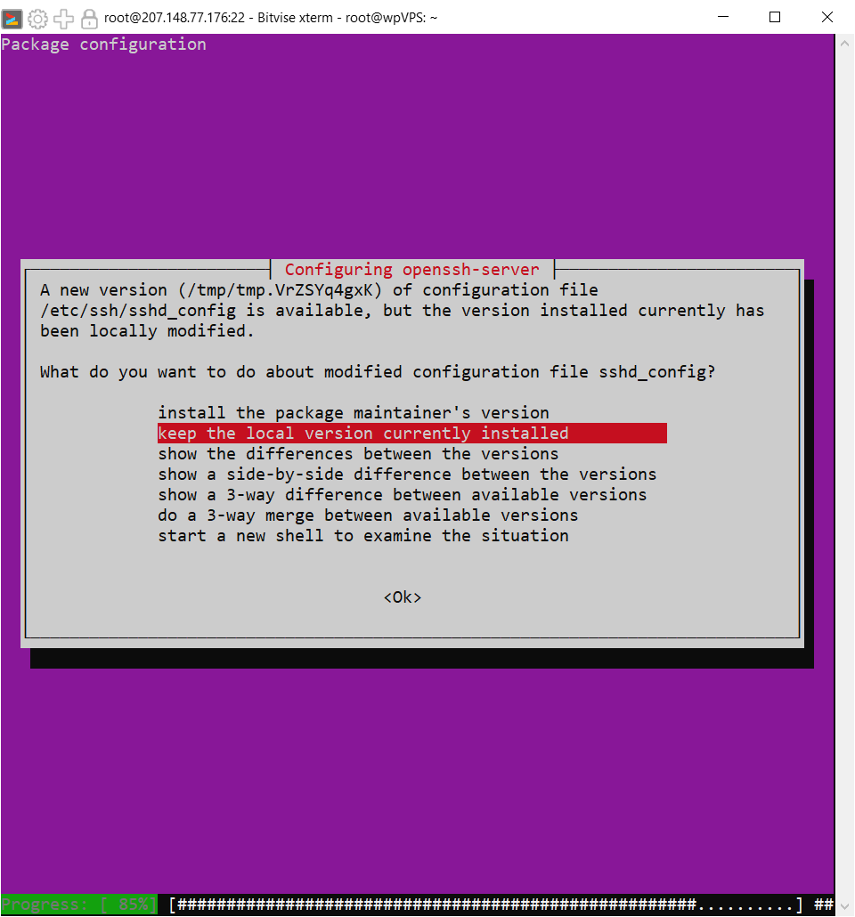 Lưu ý: Paste lệnh vào Terminal như Bitvise dùng chuột phải, chứ không phải Ctrl + V
