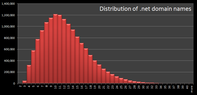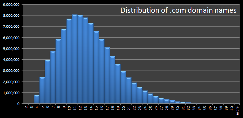 Ảnh phía trên là phân phối độ dài của tất cả các tên miền .com đã đăng ký.
