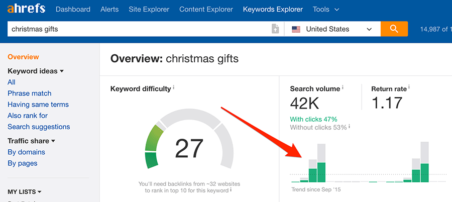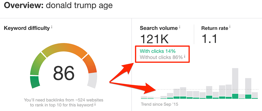 Mỗi công cụ nghiên cứu từ khóa có phương thức của riêng chúng để tính toán điểm số độ khó của từ khóa. Cách chúng tôi thực hiện tại Ahrefs là dựa trên hồ sơ backlink của top10 trang được xếp hạng đầu cho một từ khóa nào đó. Họ càng có chất lượng backlink cao, bạn càng khó đánh bại được họ.
