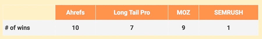 Đến thời điểm này, chỉ có một nghiên cứu so sánh tính chính xác của các công cụ đánh giá độ khó của từ khóa, và Ahrefs là công cụ chiến thắng trong bài kiểm tra đó.