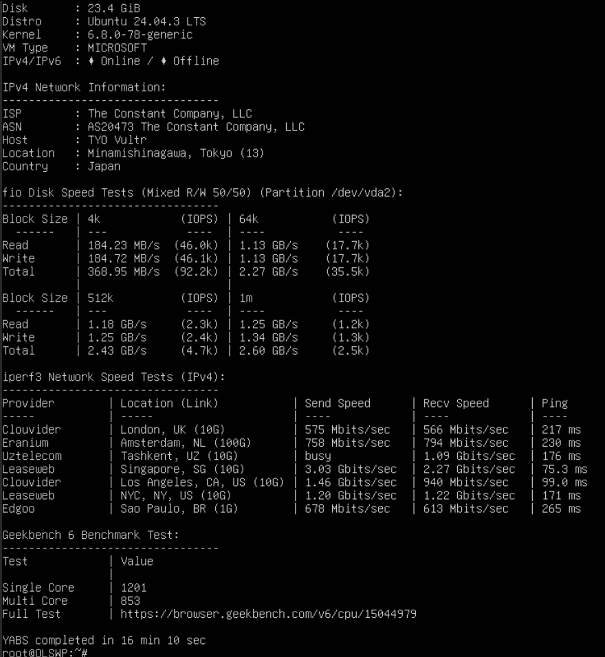 Benchmark VPS OLS bằng YABS:
