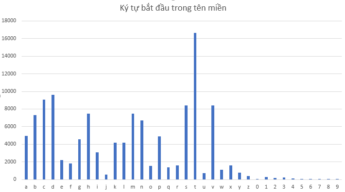 Dưới đây là biểu đồ thanh số lần ký tự đầu tiên trong tên miền xuất hiện: