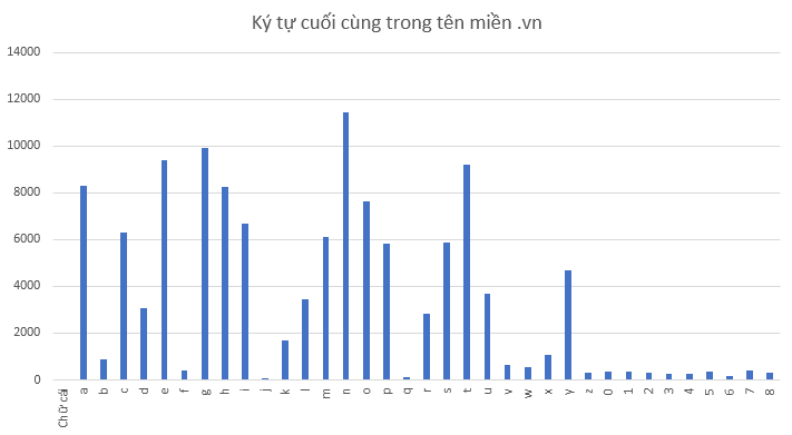 Cũng như ký tự bắt đầu trong tên miền, ở phần ký tự cuối cùng tôi cũng không tính các tên miền có ký tự cuối cùng không nằm trong bảng chữ cái latinh vì số lượng của chúng không đáng kể.