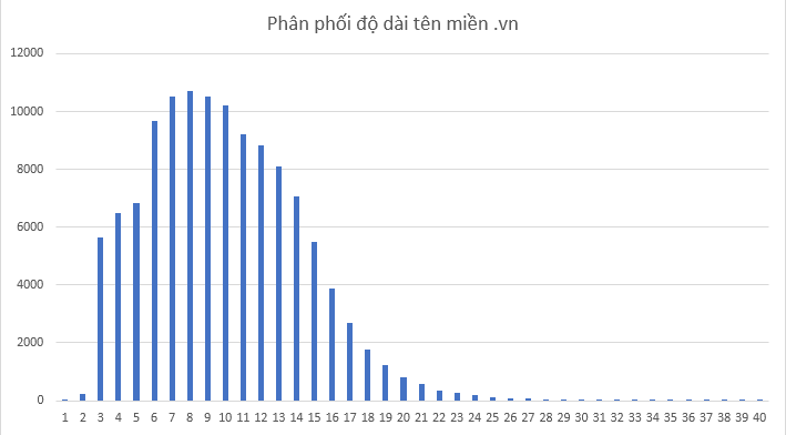 - Chỉ có 1,5% tên miền .vn trong mẫu có độ dài từ 21 ký tự đổ lên