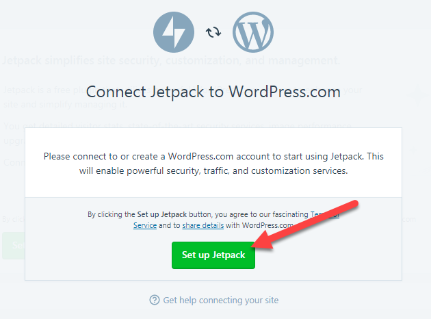 Sau khi cài đặt, để sử dụng JetPack, bạn cần kết nối nó với tài khoản trên WordPress.Com: