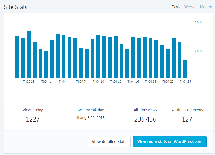 - All-time views: nghĩa là tổng lưu lượng từ trước đến nay (kể từ khi cài plugin JetPack)