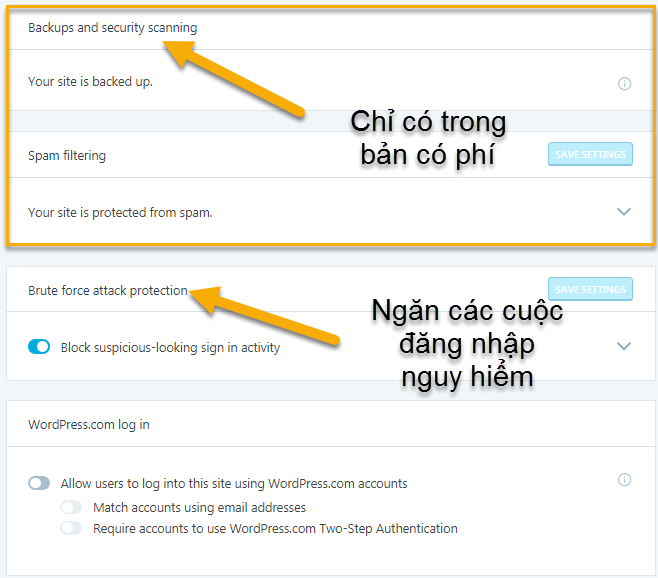 Phần cuối cùng ở chỗ WordPress.com log in là cách bạn đưa thêm biện pháp đăng nhập bằng tài khoảng WordPress.com bên cạnh việc đăng nhập truyền thống, bạn còn có thể lựa chọn biện pháp đăng nhập 2 bước để gia cố khả năng đăng nhập.