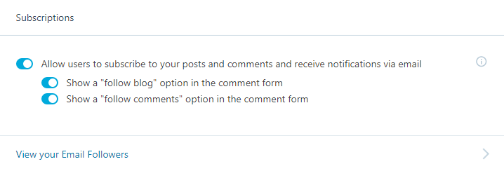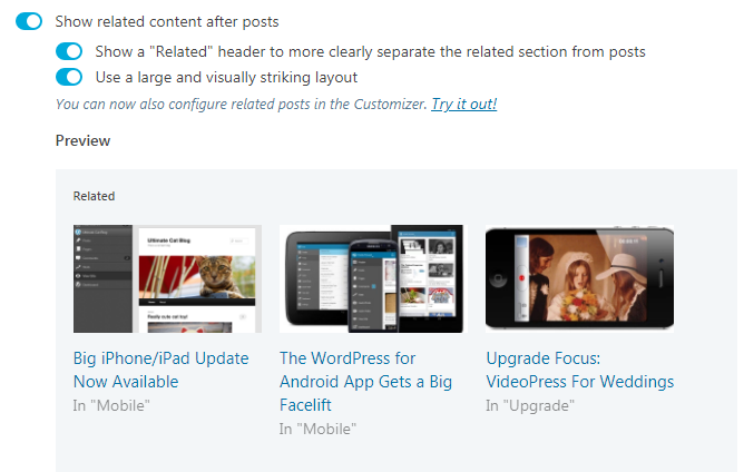- Allow readers to show their appreciation of your posts by adding a like button to your content: Thêm nút Like vào bài viết, tuy nhiên đây là nút like của riêng WordPress, do vậy người đọc cần đăng nhập vào WordPress thì mới Like được. Trong trường hợp phần lớn người đọc website của bạn cũng thường xuyên sử dụng WordPress thì tính năng này có thể hữu ích, còn không thì nó hầu như không có tác dụng gì, vì chẳng ai muốn mất công đăng ký tài khoản chỉ để like bài viết! Tùy chọn tối ưu: Tắt.